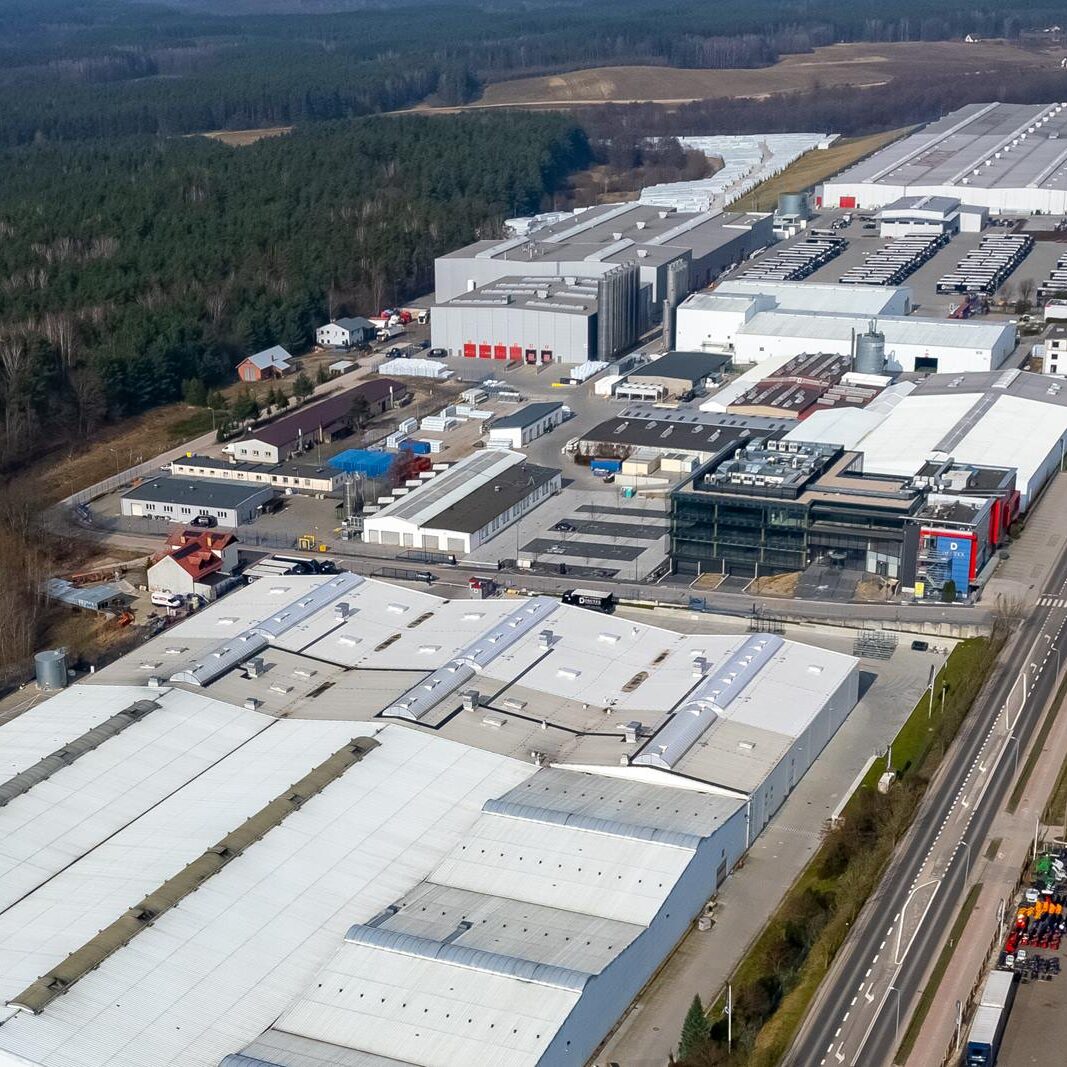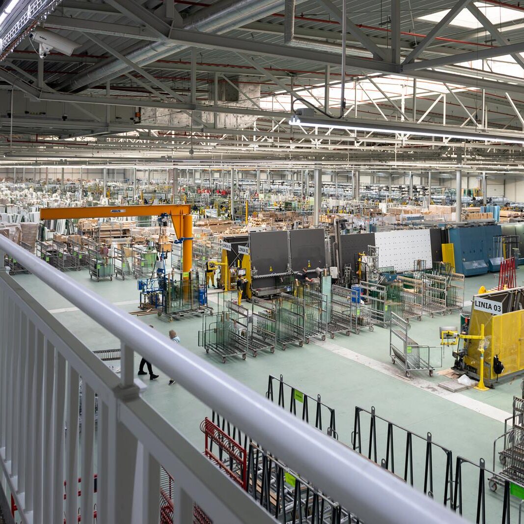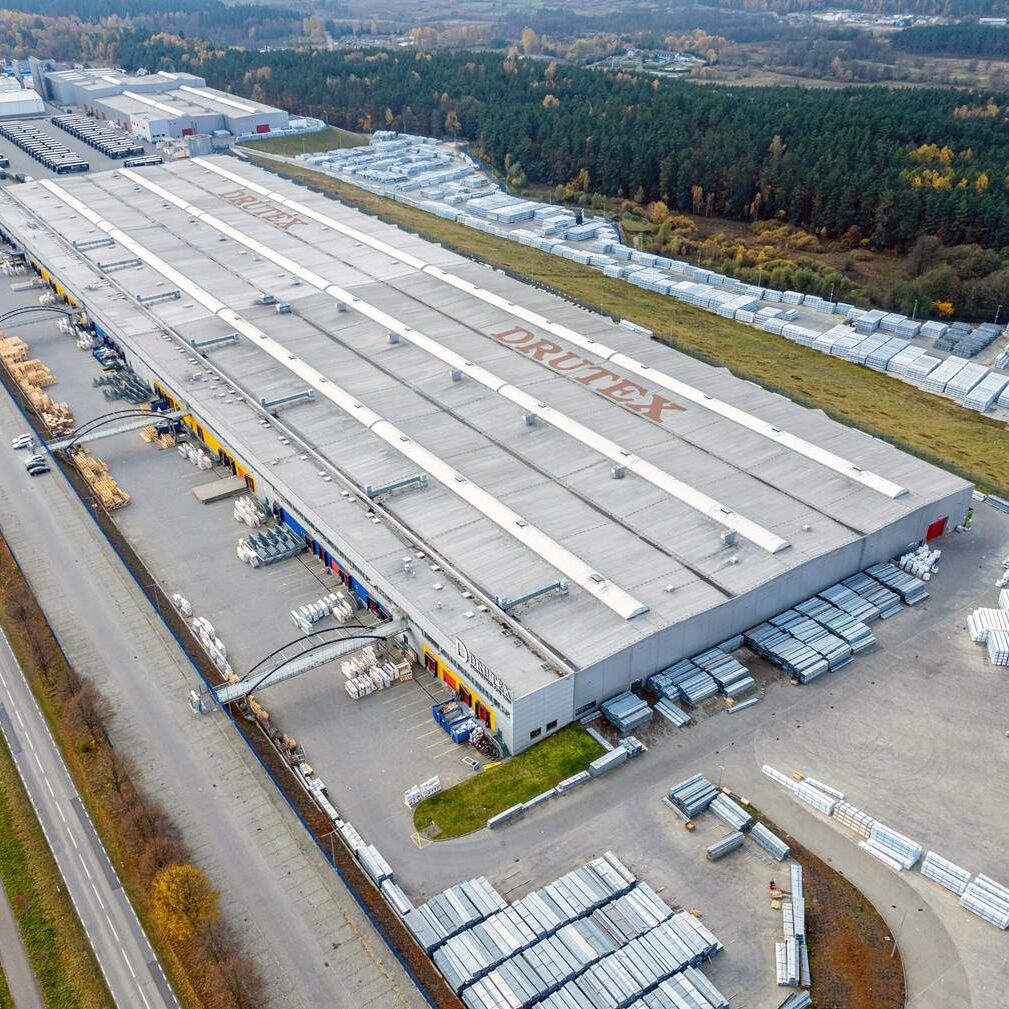 Drutex dispone di uno degli stabilimenti produttivi più estesi d’Europa nel settore dei serramenti, con una superficie che supera i 400.000 m² tra area produttiva e logistica. Questa dimensione straordinaria consente un’elevata capacità produttiva, tempi di lavorazione ottimizzati e un controllo qualità rigoroso in ogni fase del processo.
