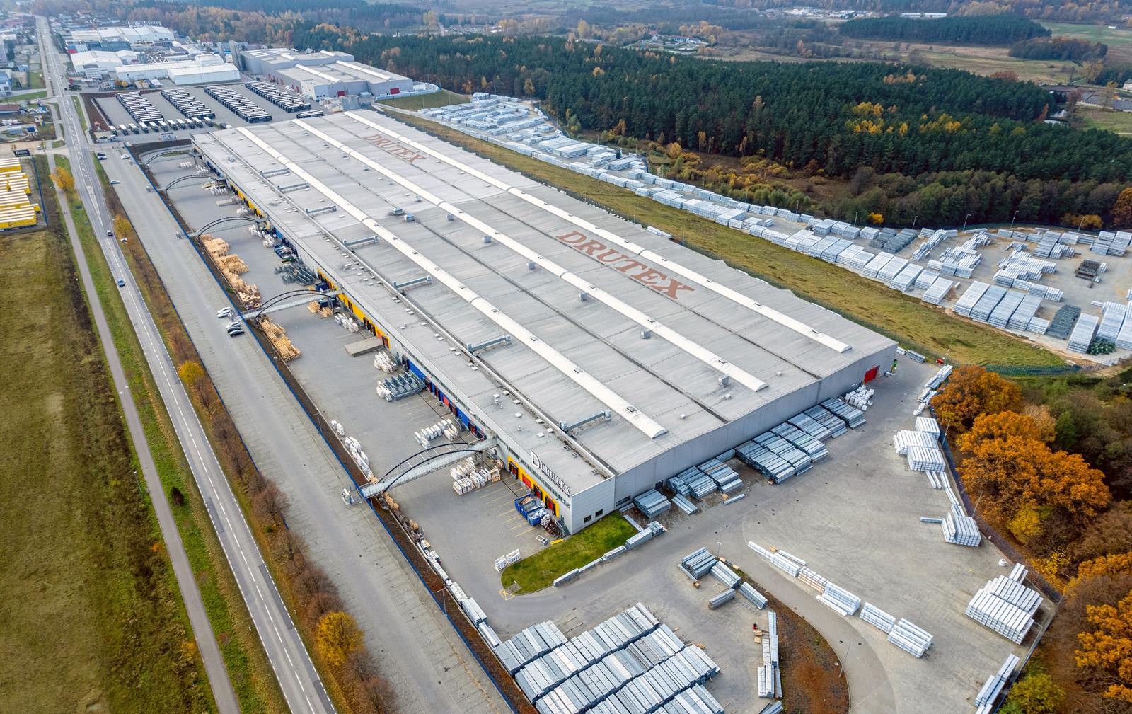 Drutex dispone di uno degli stabilimenti produttivi più estesi d’Europa nel settore dei serramenti, con una superficie che supera i 400.000 m² tra area produttiva e logistica. Questa dimensione straordinaria consente un’elevata capacità produttiva, tempi di lavorazione ottimizzati e un controllo qualità rigoroso in ogni fase del processo.